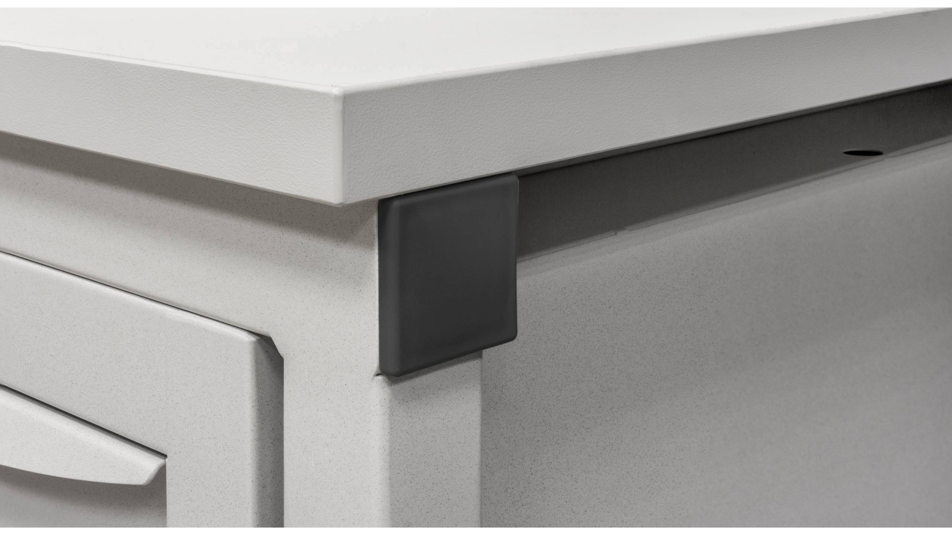Стол СМП МД представлен в двух вариантах в зависимости от условий эксплуатации. Металлический каркас усилен для устойчивости и снижения вибраций. Все металлические элементы проходят предварительную обработку перед покраской порошковой краской RAL-7035, что улучшает защиту от коррозии. Комплектация предусматривает подвесную тумбу МД, которая позволяет организовать пространство для хранения мелких деталей и инструментов.