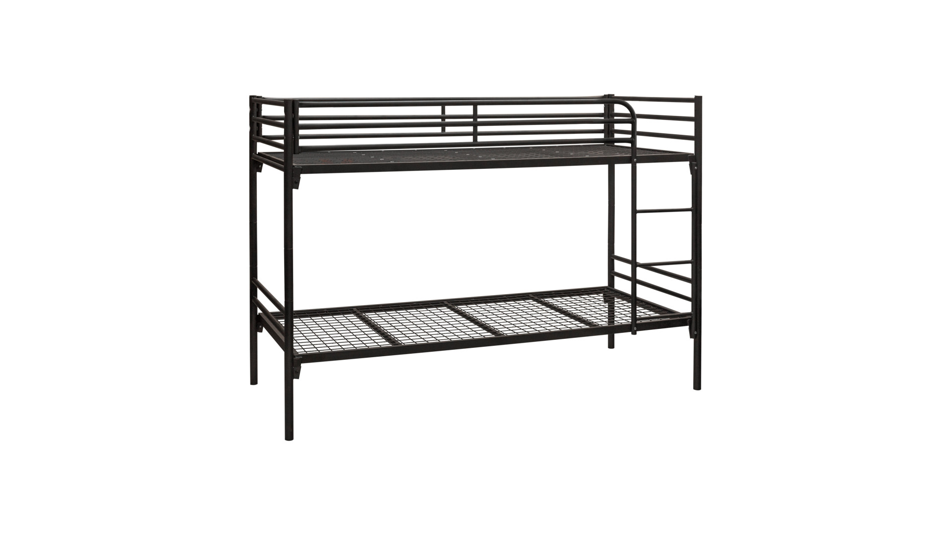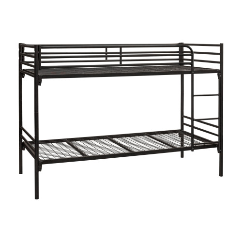 Каркас изготовлен из предварительно обработанного металла, на который нанесена порошковая краска черного цвета (RAL 9005). Общие размеры конструкции - 2094×1475×956 мм (Ш×В×Г), вес - 57 кг. Металлические элементы обеспечивают жесткость и долговечность при ежедневном использовании. Верхний ярус оборудован защитными бортиками для безопасного сна, доступ осуществляется с помощью вертикальной лестницы. Оба уровня имеют одинаковую функциональность и выдерживают нагрузки, что соответствует требованиям эксплуатации в военной сфере.