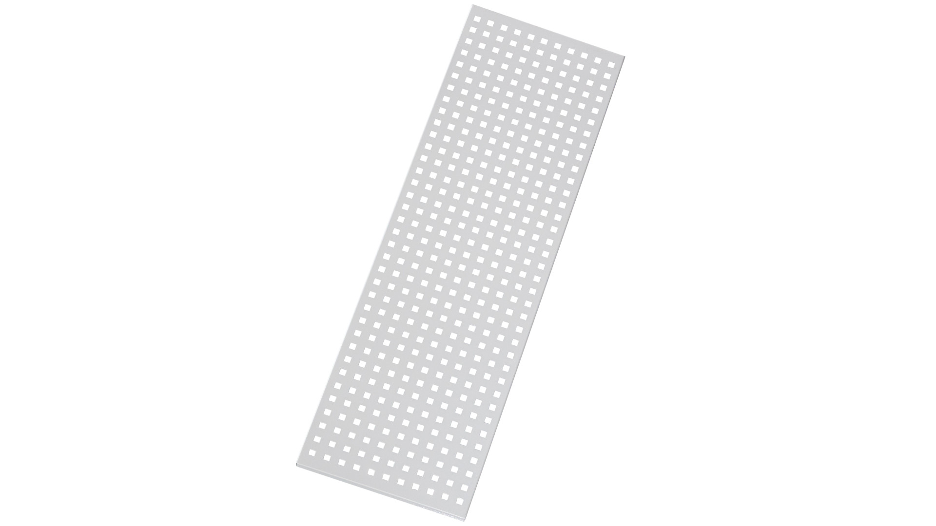 Перфорация стеллажа метизного - это металлическая панель с перфорированными отверстиями для крепления крючков, держателей и другой оснастки на стеллажах метизного типа. Элемент имеет размеры 965×30×298 мм и обеспечивает удобное размещение навесных элементов. Мы изготавливаем панель из металла и покрываем порошковой краской RAL 7035, что повышает защиту поверхности от влаги, коррозии и механического истирания.