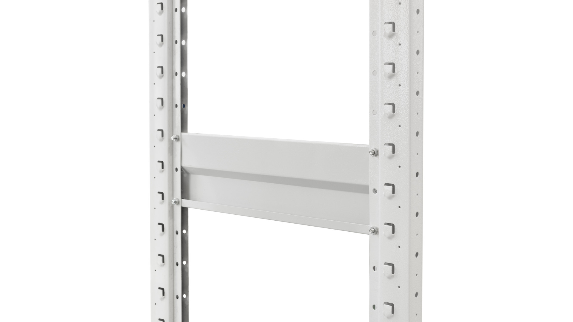 Комплект соединителя стоек для стеллажей ПС – используется для соединения стоек стеллажа между собой в сплошную раму (минимальное количество на одну раму – 2 соединителя). Комплект разработан таким образом, чтобы сохранить грузоподъемность конструкции без риска поломки в месте крепления. Детали изготавливаются из холоднокатаной стали и надежно фиксируются болтовыми соединениями через перфорацию стоек.