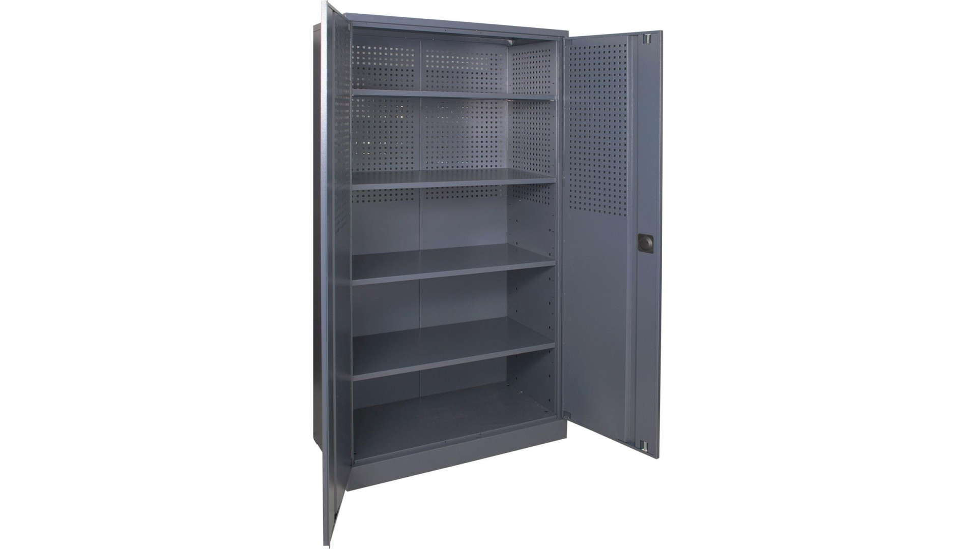 - Перфорированные дверцы и задняя стенка для удобной установки дополнительных элементов (крючков, полок, кюветов).