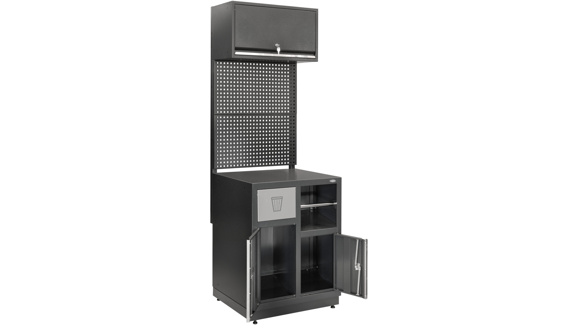 Блок MODUL с урной - это решение для организации рабочих зон на СТО, в мастерских и производственных помещениях. Модель позволяет хранить инструменты и материалы, а также удобным способом собирать отходы, это помогает поддерживать порядок на рабочем месте.