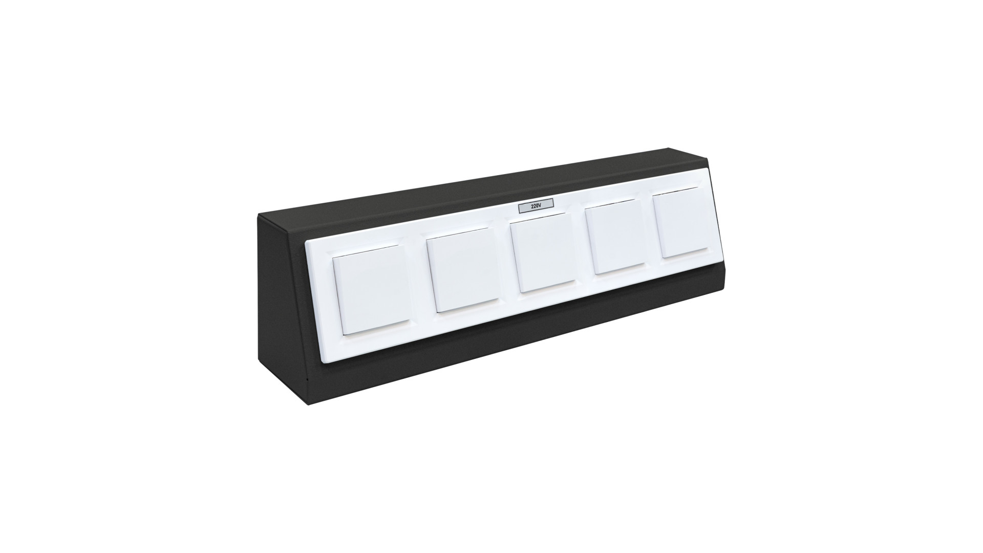Блок розеток MODUL 5Р - это дополнительная комплектация для мебельных систем серии MODUL. Он используется для организации подключения оборудования и создает удобные условия работы с электроприборами. Модель устанавливается непосредственно в рабочую зону, что позволяет рационально использовать пространство и аккуратно располагать кабели.