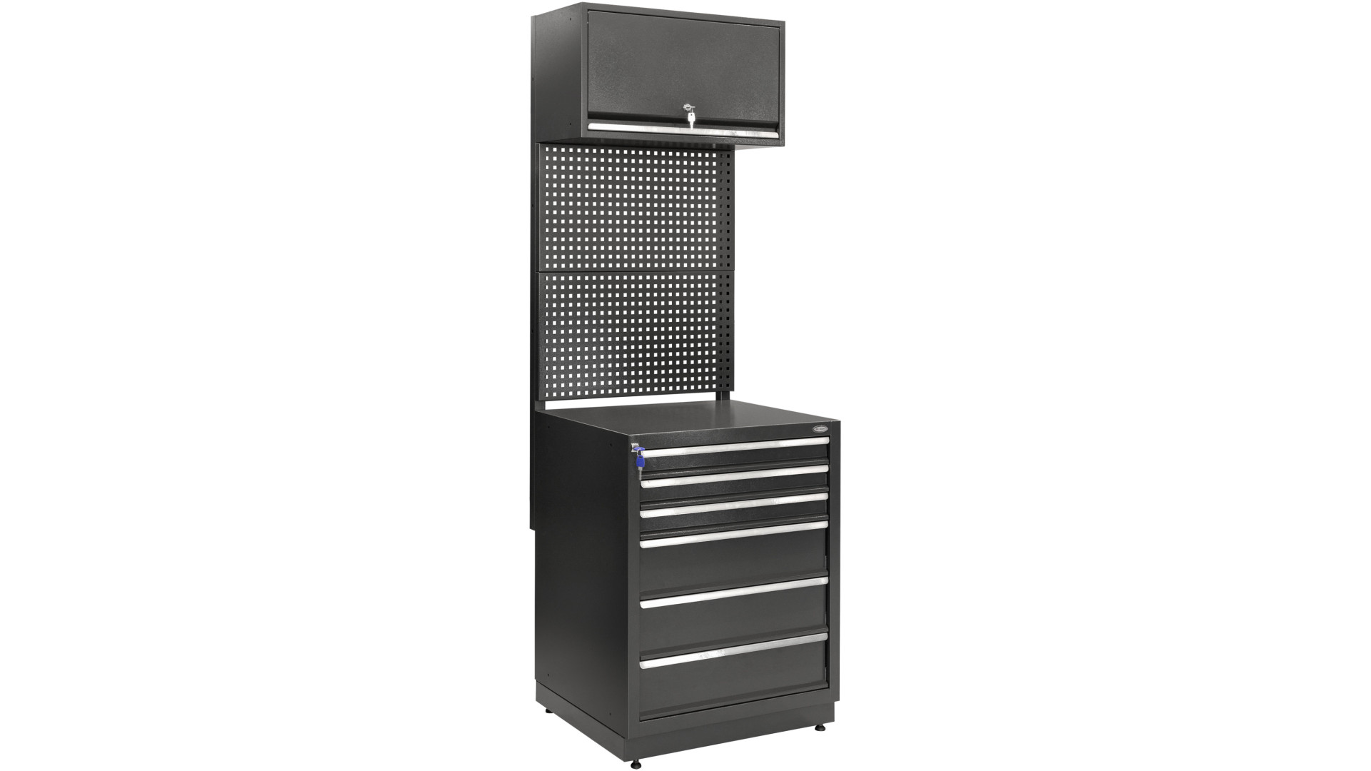 - Шесть блоков и два шкафа создают достаточную вместимость для инструментов и материалов.