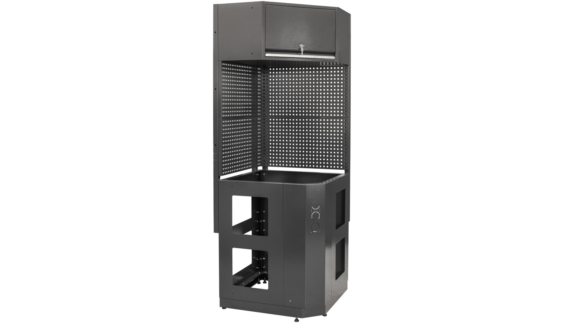 Система MODUL К-08-002 - это угловой мебельный комплекс, предназначенный для организации рабочего пространства в производственных и сервисных помещениях. Конструкция сочетает шкафы, блоки и рабочую поверхность, обеспечивая достаточно места для хранения инструментов и оборудования. Угловая компоновка позволяет рационально использовать площадь и создавать многофункциональную зону для выполнения различных задач.