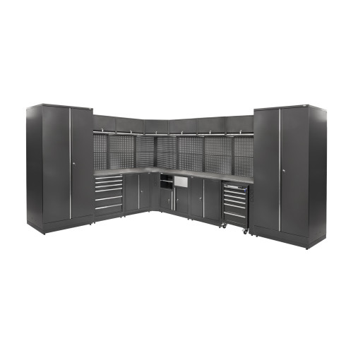 Система MODUL К-08-002 - это угловой мебельный комплекс, предназначенный для организации рабочего пространства в производственных и сервисных помещениях. Конструкция сочетает шкафы, блоки и рабочую поверхность, обеспечивая достаточно места для хранения инструментов и оборудования. Угловая компоновка позволяет рационально использовать площадь и создавать многофункциональную зону для выполнения различных задач.