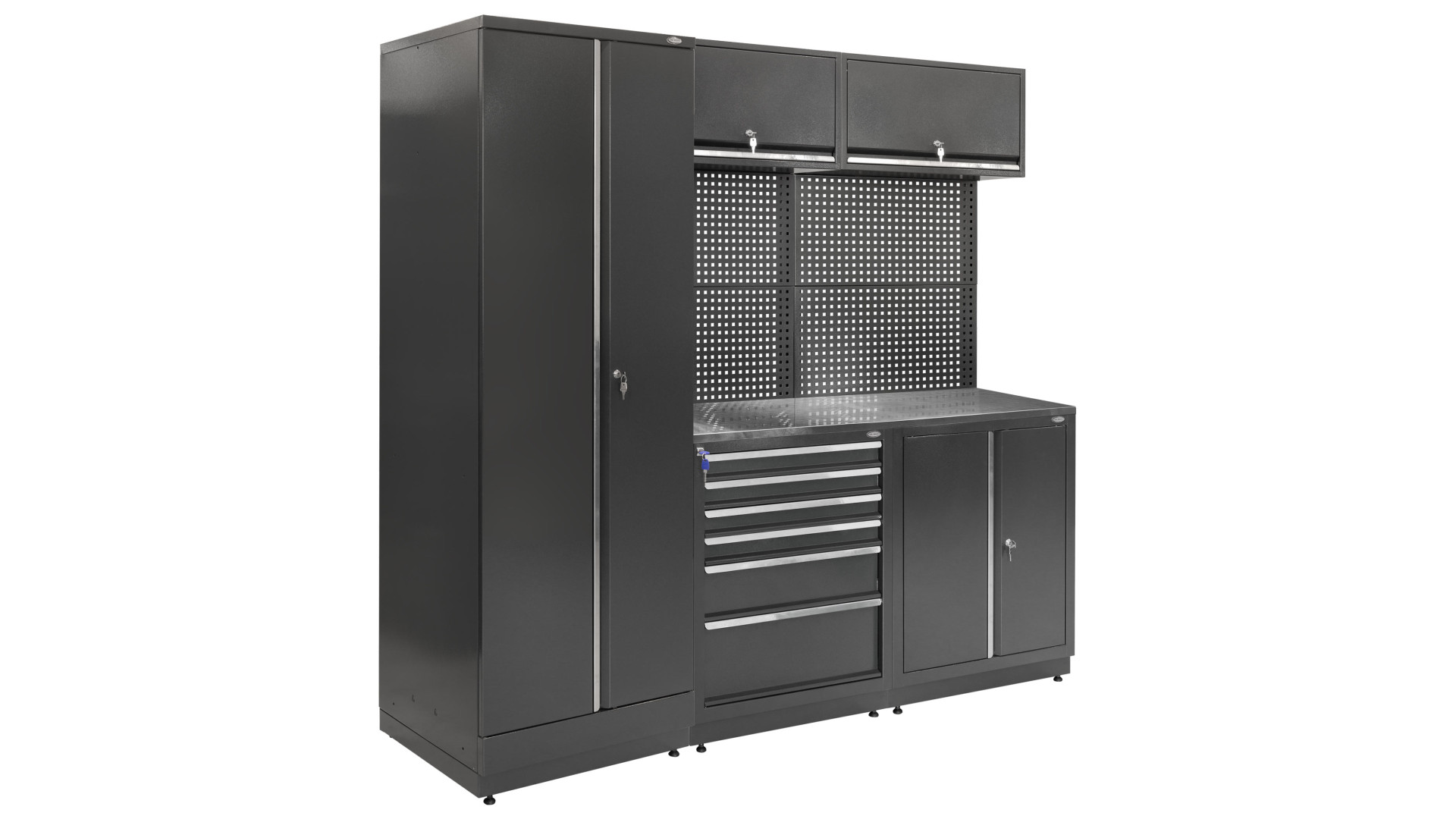 • Рациональное использование пространства благодаря сочетанию шкафа, блоков и перфорированных панелей.