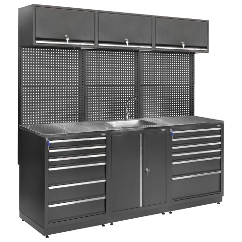 Модель изготовлена из листовой стали и покрыта порошковой краской RAL7016 (антрацитово-серый). Размеры комплекса: ширина 2025 мм, глубина 655 мм, высота 2020 мм. Вес зависит от вариации и составляет 253-264 кг. Система включает блок MODUL 3М3С, блок MODUL 4МСБ, блок MODUL Д и столешницу серии 2025.