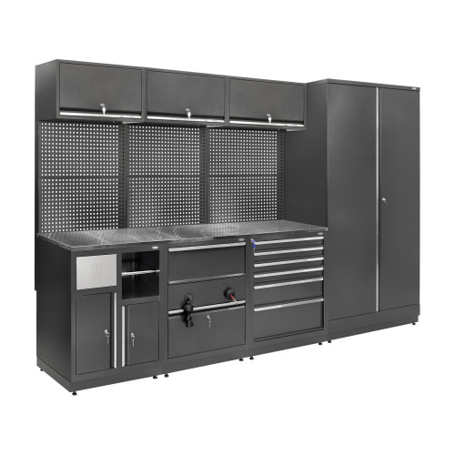 Система MODUL Л-04-004 - это комплекс мебели для организации рабочей зоны, который сочетает шкаф, блоки с выдвижными ящиками, столешницу и специализированные элементы. Конструкция предназначена для производственных помещений и мастерских, где важно иметь удобное хранение инструментов, рабочей одежды и доступ к вспомогательному оборудованию. Система формирует рабочее место, которое уменьшает количество лишних действий пользователя и позволяет работать эффективнее.