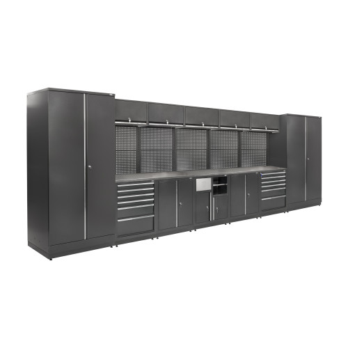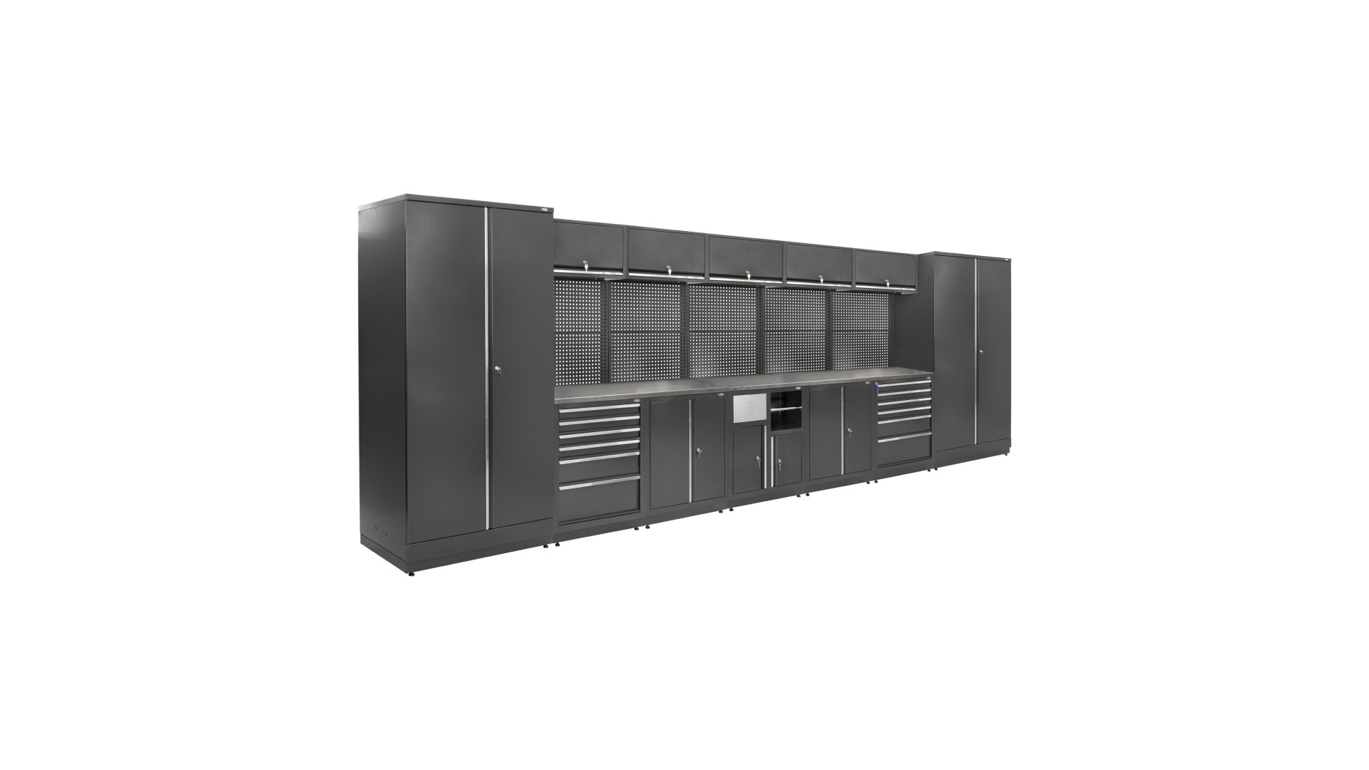 Система MODUL Л-07-001 - это мебельный комплекс для производственных и мастерских помещений, объединяющий пять блоков и два шкафа, формируя вместительное рабочее место. Конструкция отличается большой рабочей поверхностью длиной 5375 мм, что делает ее оптимальным решением для работ с габаритными изделиями и большим количеством инструментов.
