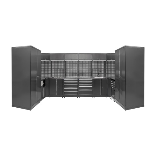 Система MODUL П-10-001 - это универсальное решение для обустройства гаражей, мастерских и сервисных зон. Конструкция создает удобное рабочее пространство, совмещая хранение инструментов и расходных материалов с рабочими поверхностями. Система относится к типу U-Shape и подходит для организации комплексных рабочих мест.