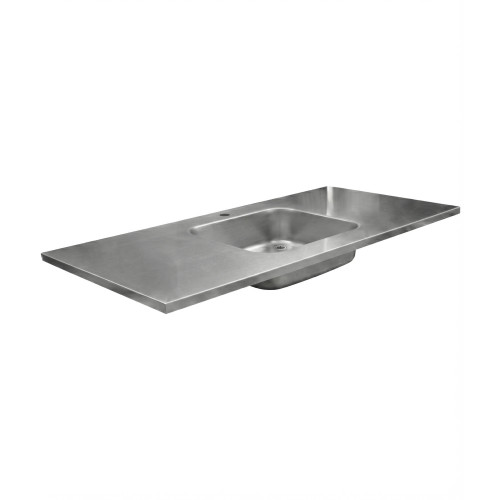 Столешница изготовлена из древесно-стружечной плиты толщиной 25 мм, поверхность которой покрыта листом нержавеющей стали AISI 201-1 мм. Она входит в состав системы MODUL и совместима с другими ее элементами. Нержавеющая поверхность устойчива к влаге и механическому воздействию, что гарантирует длительный срок службы изделия. Мойка интегрирована в конструкцию и располагается в соответствии с выбранной модификацией.