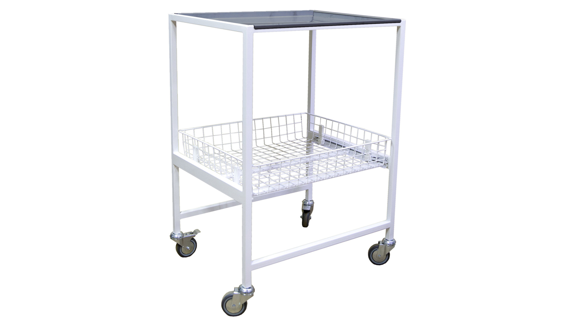 Стол имеет прочный металлический каркас, который обеспечивает жесткость и стабильность во время эксплуатации. Конструкция оснащена одной полкой из нержавеющей стали для инструментов и расходных материалов, а также выдвижным ящиком для вспомогательного хранения. Поверхность покрыта порошковой краской с антибактериальными свойствами, устойчивой к воздействию дезинфицирующих средств. Опора оборудована четырьмя колесами, что обеспечивает мобильность в пределах кабинета и позволяет фиксировать положение стола во время работы.