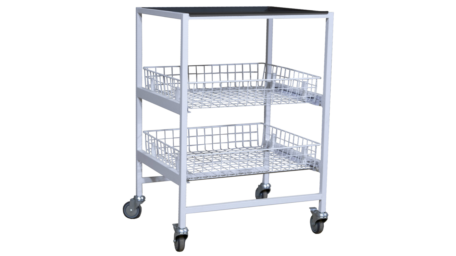Стол имеет металлический каркас, который обеспечивает стабильность конструкции. Для размещения инструментов предусмотрено одну полку из нержавеющей стали и два выдвижных ящика для дополнительных материалов. Поверхность покрыта порошковой краской с антибактериальными свойствами, устойчивой к воздействию дезинфицирующих средств. Опора оборудована четырьмя колесами, что обеспечивает мобильность благодаря колесной базе и позволяет фиксировать положение стола во время работы.