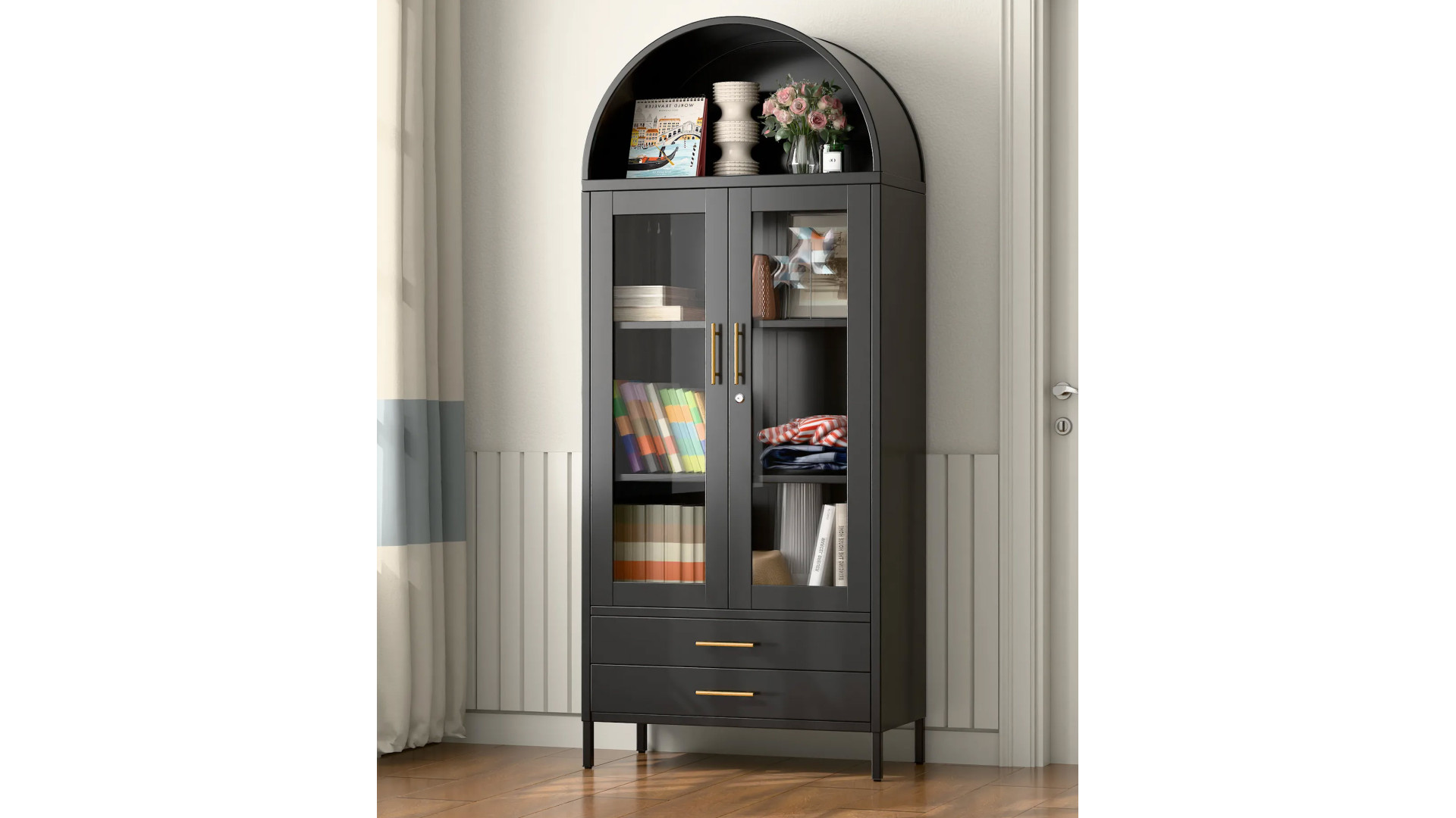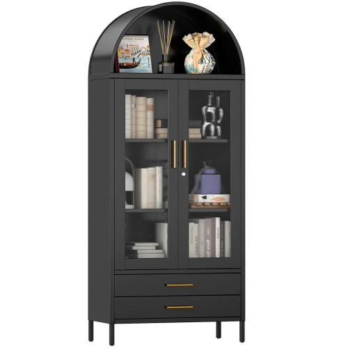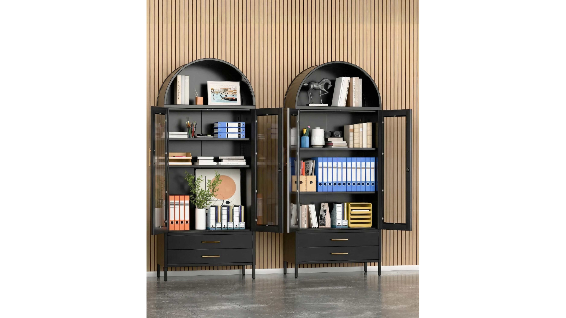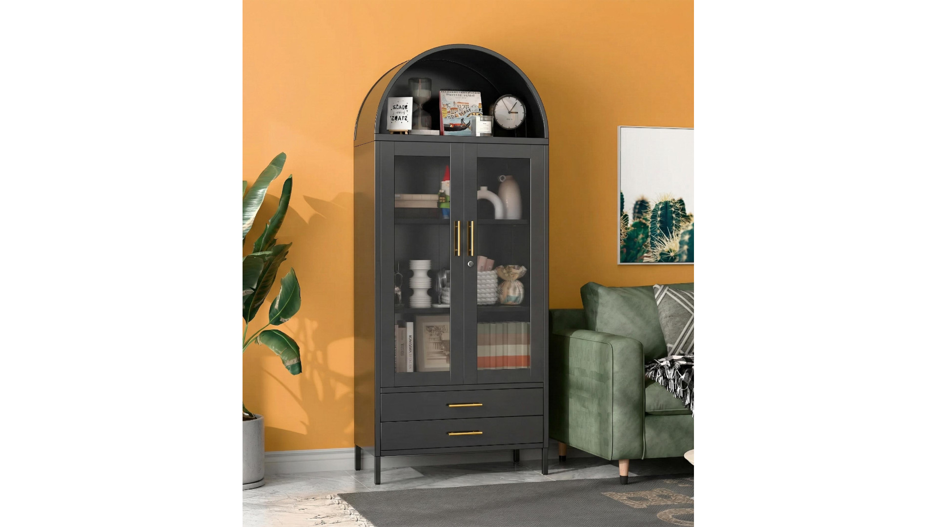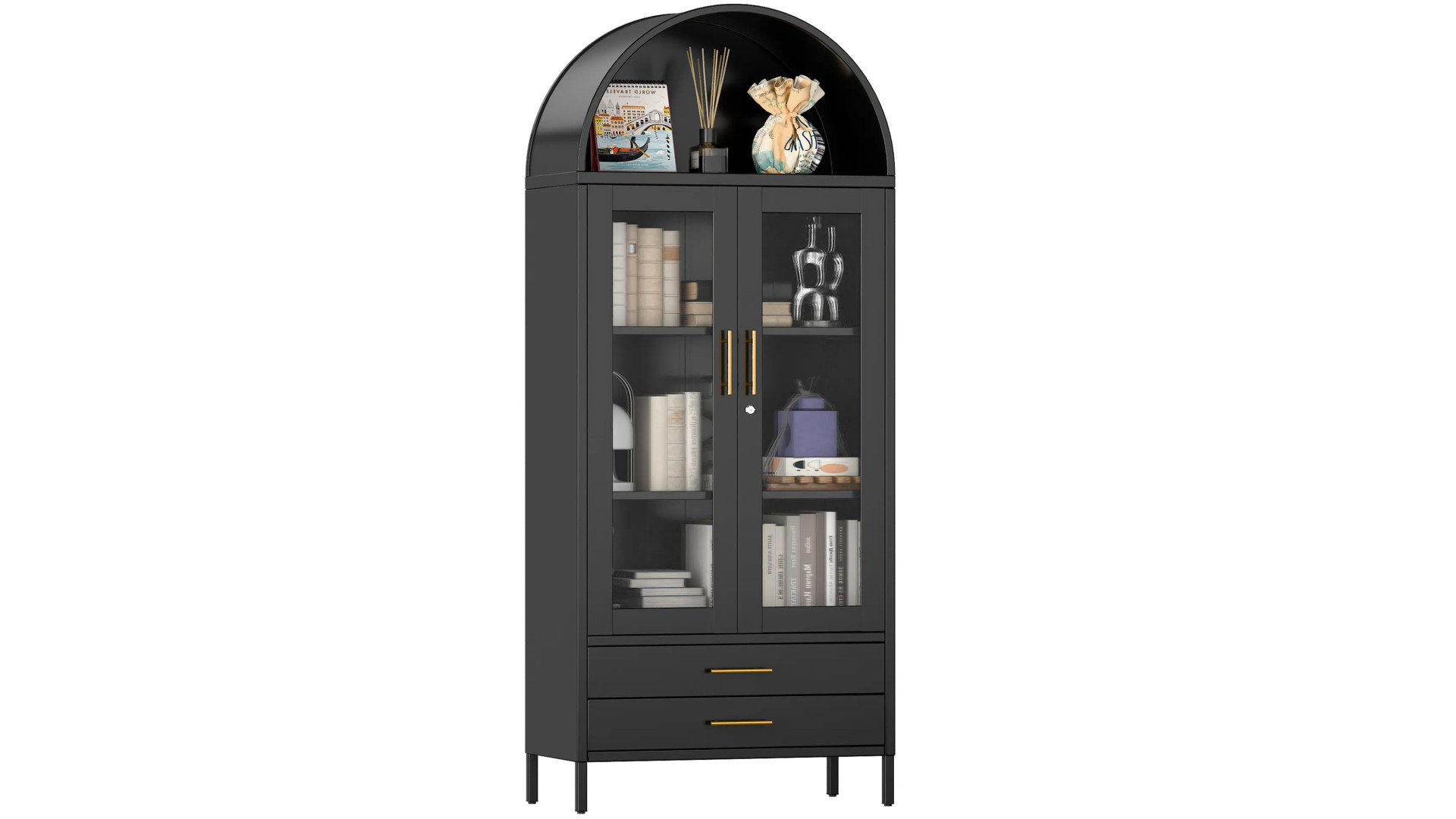 Шкаф-витрина металлическая «Арка», модель 03 разработанная для эксплуатации в офисных и жилых помещениях. В основе изделия конструкция из холоднокатаной стали толщиной 0,6-0,8 мм, что обеспечивает высокую жесткость и устойчивость каркаса. Металлический шкаф является пожаробезопасным. Поверхность покрыта полимерной порошковой краской черного цвета (RAL 9005), которая создает прочный защитный слой против коррозии, сколов и царапин.