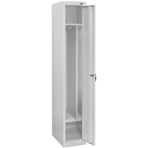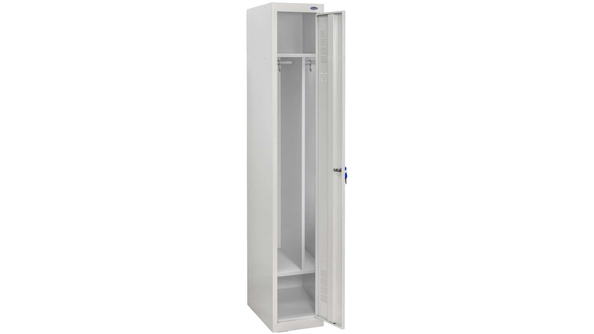 Дверь шкафчика ШОМ-300/1 вик.07 усилена желобом жесткости. Это повышает стойкость к ударам и механическим воздействиям. Надежная конструкция устойчива к расшатыванию. Светло-серый цвет шкафов универсален и подходит для любого интерьера. Конструкции доставляются в собранном или разобранном виде. Внутри одежного шкафа расположена перекладина под вешалки и полочка. Это позволяет компактно разместить вещи и повесить верхнюю одежду. При оформлении заказа можно приобрести дополнительную комплектацию. Менеджер учтет пожелания и предложит металлический шкаф ШОМ-300/1 вик.07 по лучшей цене.