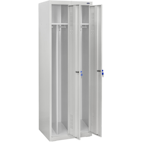 Менеджер поможет подобрать оптимальный тип сборки при оформлении заказа. Ячейки оборудованы скобой под вешалки. Это поможет комфортно хранить верхнюю одежду. Полочка и крючок позволят компактно разместить личные вещи в шкафчике. Перфорированная дверь одежного шкафа ШОМ-300/2 вик.01 обеспечивает вентилирование содержимого. Это препятствует скоплению неприятных запахов и влаги. Конструкция окрашивается полимерно-порошковой краской светло-серого цвета. Фосфатирование корпуса защищает шкаф от коррозии. Краска не содержит токсичных компонентов. Шкафы можно устанавливать во влажных закрытых пространствах, что делает их универсальными. Покупайте шкафы для одежды ШОМ-300/2 вик.01 по ценам производителя.