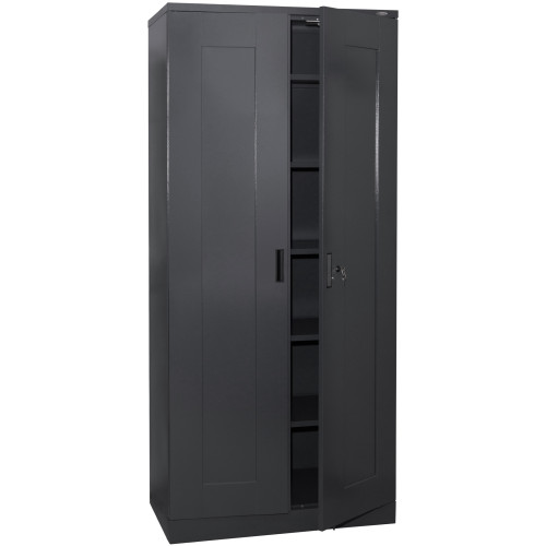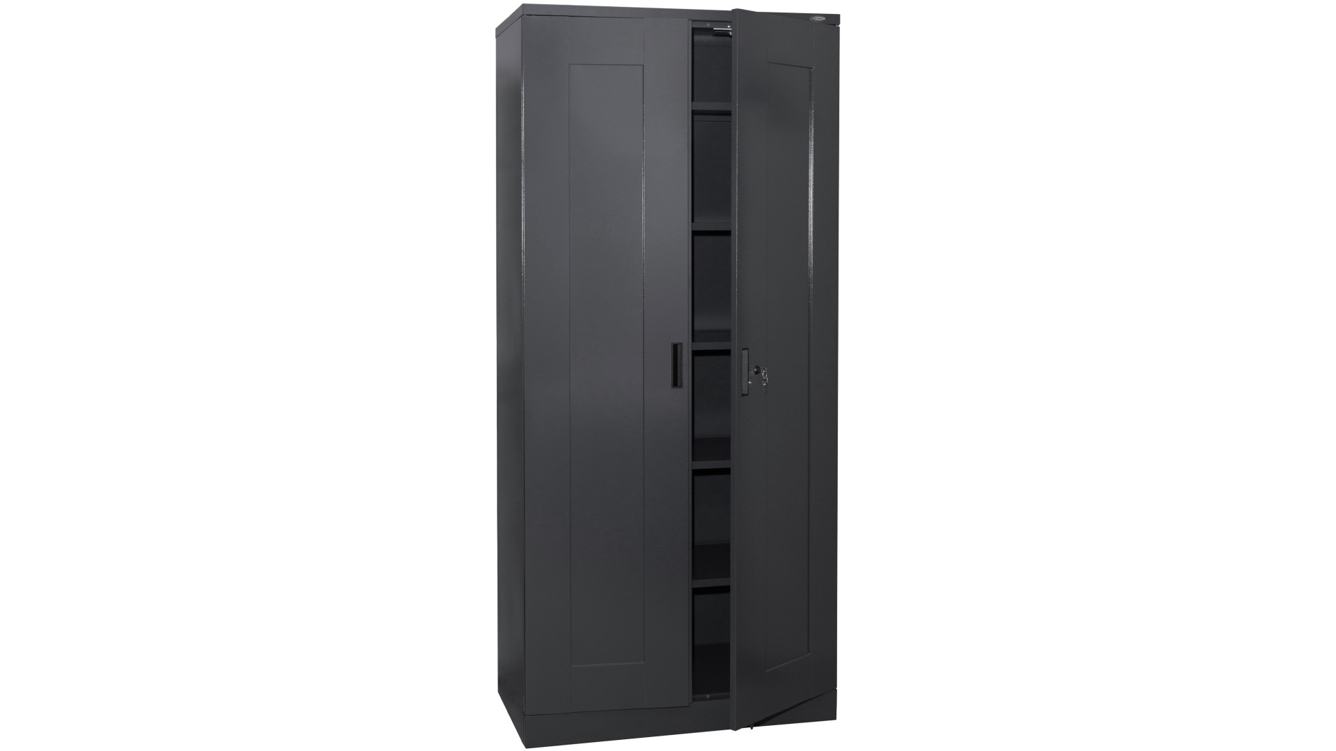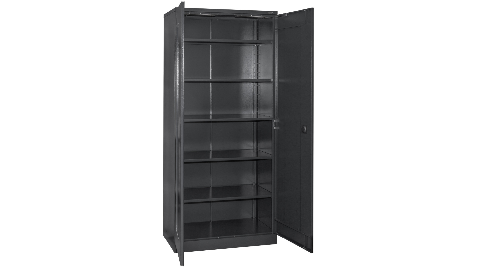Габариты модели составляют 2200х1000х455 мм (ВхШхГ), что обеспечивает достаточно пространства для хранения. Модель ШКГ-10 изготовлена из толстого металла, а предварительная обработка и порошковая краска (RAL-7016) предотвращают коррозию и умеренные царапины, что делает шкаф оптимальным для длительного использования. В конструкции предусмотрены полки, усиленные ребрами жесткости, которые выдерживают до 60 кг равномерной нагрузки. Ригельная система запирания закрытого типа дополняется поворотной ручкой и замком «ЕМКА» немецкого производства.