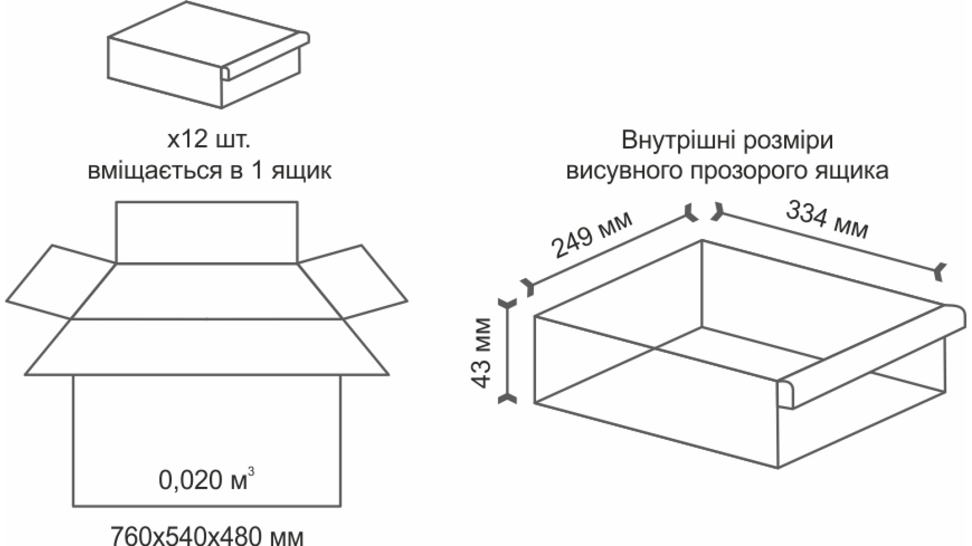 Внутренние размеры выдвижного ящика В×Ш×Г, мм: 66×248×334