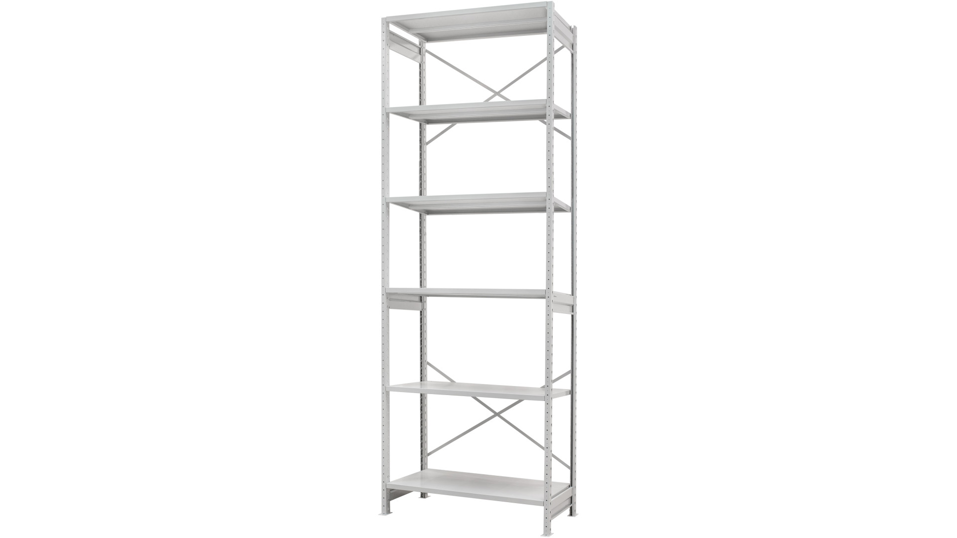 Каркас стеллажей обеспечивает надежную фиксацию полок и выдерживает нагрузку в соответствии с выбранной моделью. Металл предварительно обрабатывается, после чего наносится порошковая краска RAL 7035, это повышает устойчивость стеллажей к влаге и умеренным царапинам. Каркас обеспечивает жесткое крепление полок и стабильность ряда. Вы можете выбрать нужные параметры стеллажа, лично под ваши потребности с удобным калькулятором стеллажей. Стойки с металлическими подпяточниками, дают возможность прикрепить стеллаж к полу.