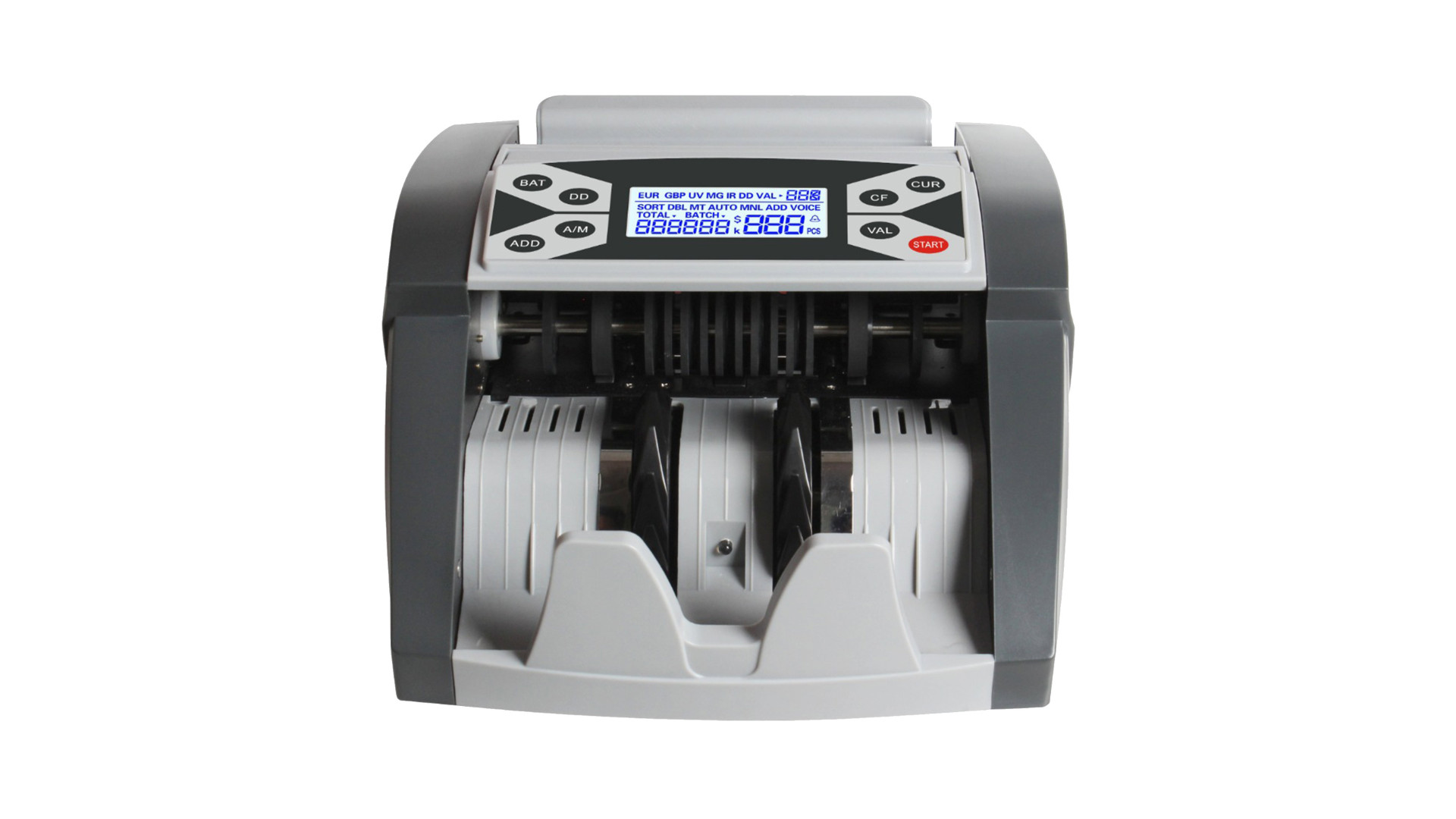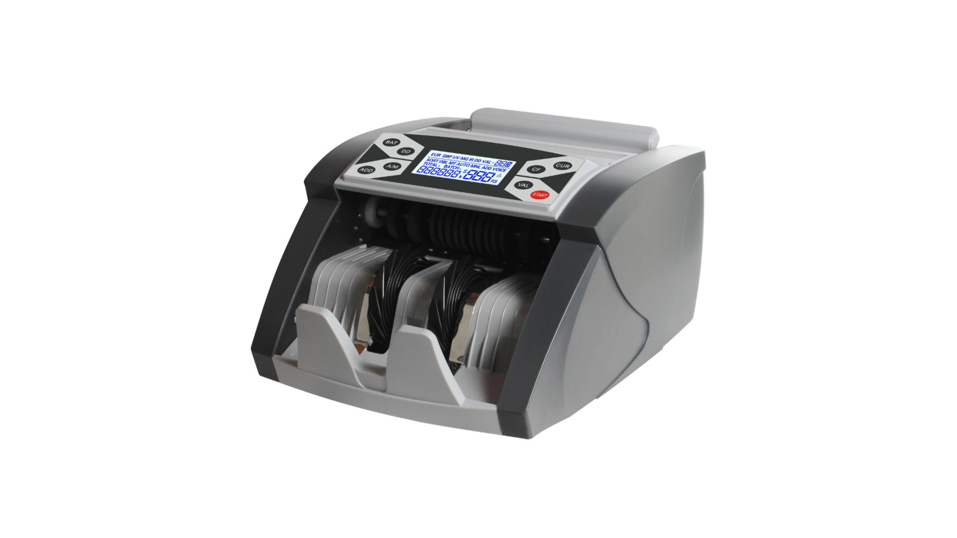 Счетчик банкнот работает в режиме «автостарт». Аппарат снабжен двумя дисплеями: основной LCD-дисплей пользователя и выносной дисплей для клиента. Счетчик выполняет фасовку листов от 1 до 999 единиц. Счет проводится с накоплением денежных единиц и фасовкой. Функция суммирования ADD позволяет прибавить банкноты к уже обработанным, учитывая номинал. Аппарат работает со скоростью 1000 банкнот в минуту. Низкий уровень шума при пересчете не мешает работе персонала.