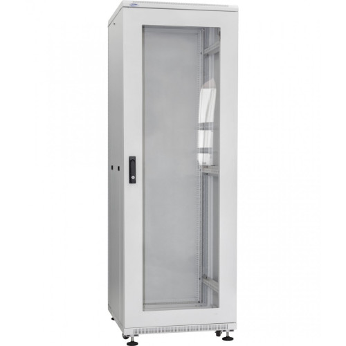 Модель поддерживает дополнительную комплектацию: стационарные, консольные и выдвижные полки, розеточные и вентиляционные модули, а также распределительные модули под электроавтоматы. В ручку двери встроен замковый механизм, который регулирует доступ к оборудованию. При необходимости дверь вместе с ручкой можно перевесить на другую сторону, обеспечив удобное открывание.