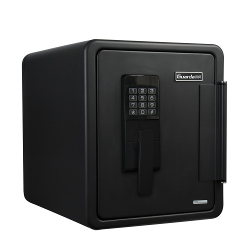 Модель имеет внешние габариты 370 мм (Ш) x 467 мм (Г) x 427 мм (В) при весе 43,5 кг. Внутреннее пространство размером 250 мм (Ш) x 313 мм (Г) x 319 мм (В) позволяет хранить документы и другие предметы общим объемом 25 литра. Внутри установлена полка для организации содержимого. Сейф поставляется в картонной упаковке. Поверхность выполнена в графитовом цвете. Производителем является компания Guarda (Китай).