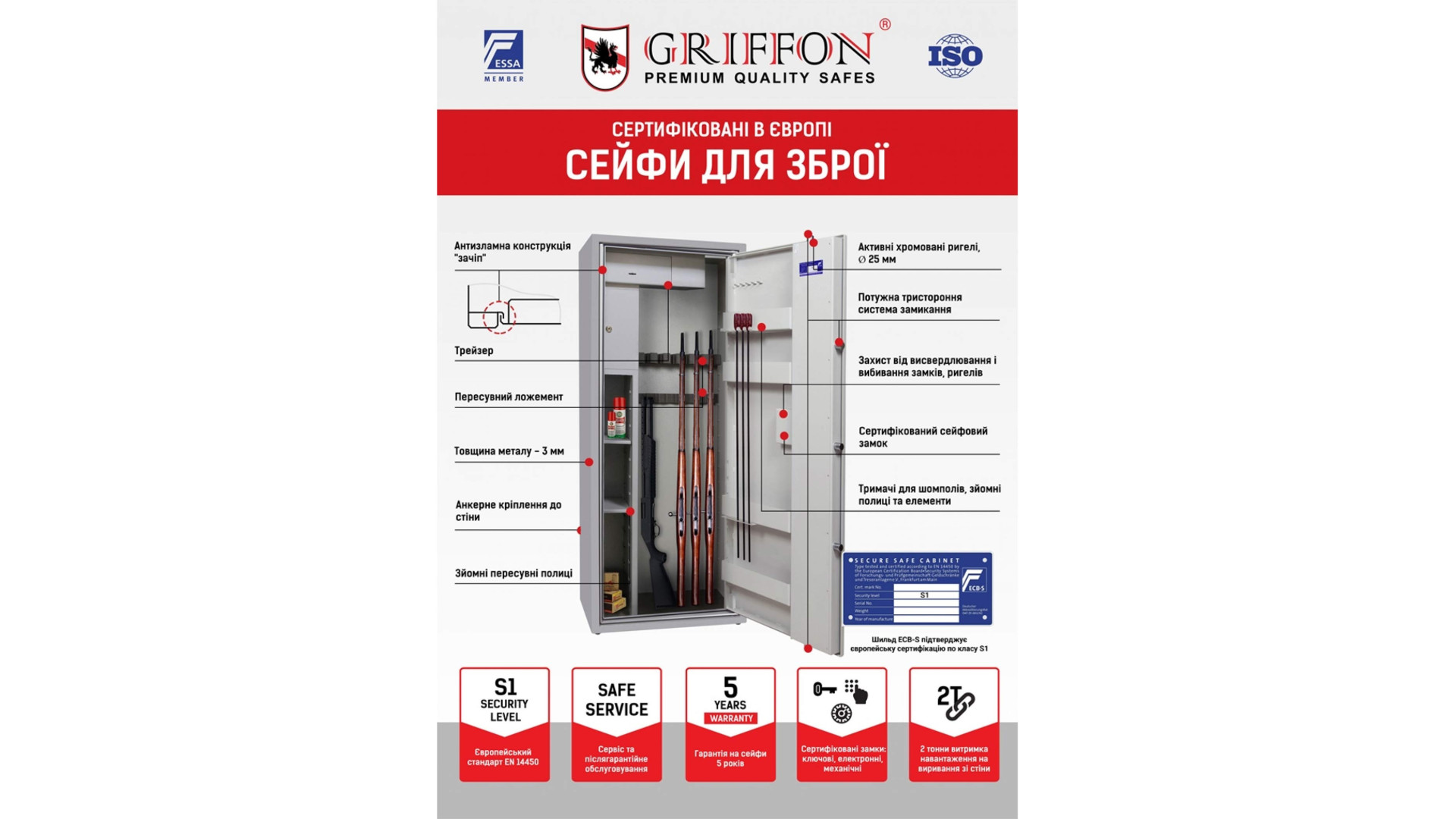 - Соответствие классу S1 по EN 14450 для защиты оружия.