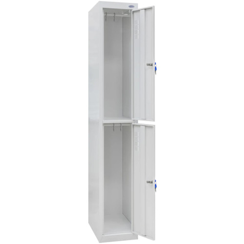 Для изготовления шкафа ШОМ-300/1-2 использована толстая сталь. Конструкция подходит для большинства интерьеров и школьных заведений. Небольшой вес упрощает установку (поставляется в разобранном виде). Шкаф поделен на две функциональные секции, удобных для хранения верхней одежды, обуви или учебных материалов. Изделия надежно защищены от несанкционированного доступа с помощью цилиндрических замков Emka (Франция) с индивидуальным ключом. Шкафы для одежды в собранном виде скреплены заклепками, а в разобранном — поставляются в упаковке и собираются на зацепах.
