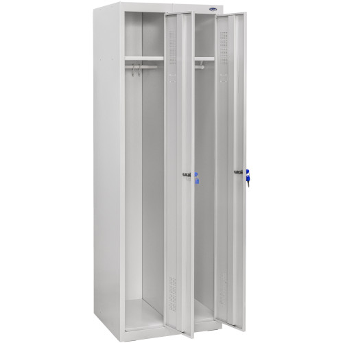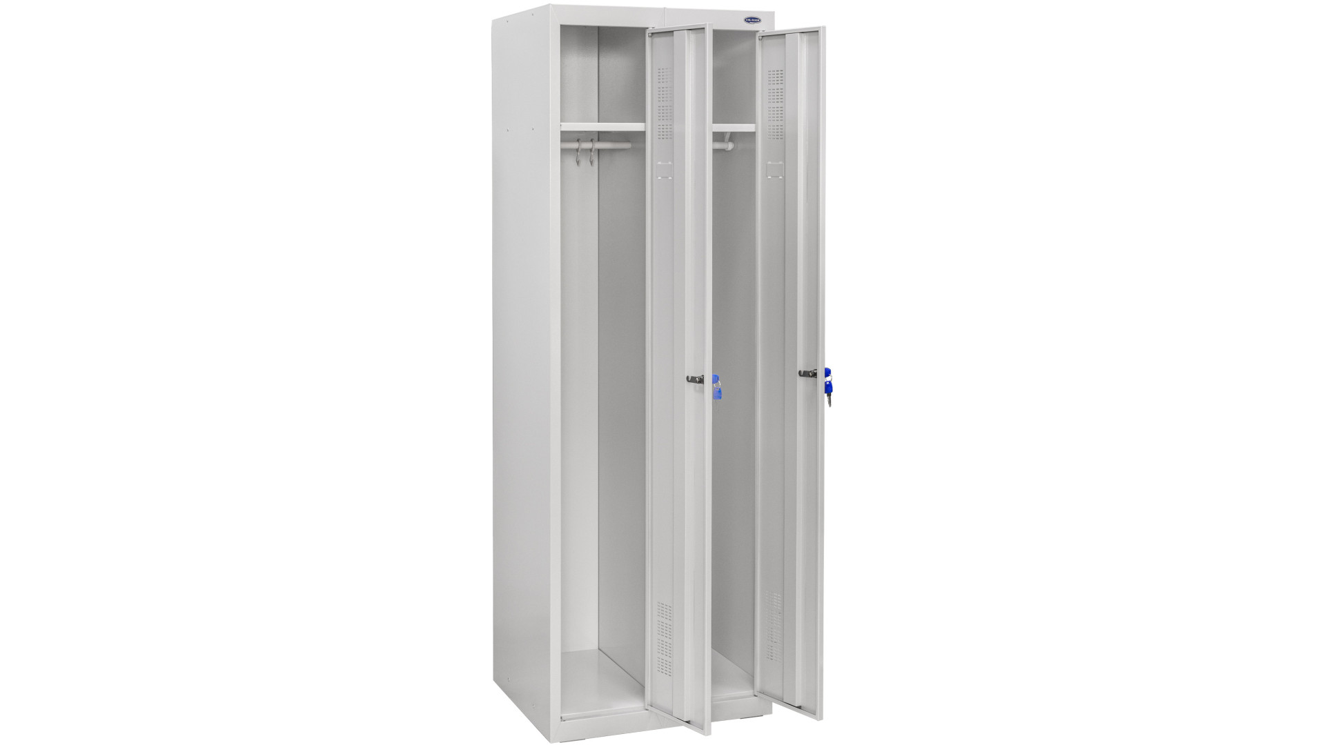 Металлический одежный шкаф ШОП-300/2 представляет собой конструкцию с двумя ячейками. Они предназначены для независимого использования, потому шкаф может находиться в распоряжении нескольких человек. Стенки и дверцы изделия выполнены из высококачественной стали, которая известна повышенной выносливостью. За счет объединения двух секций в один конструктив, экономится пространство раздевалки. Особенностью модели ШОП-300/2 является повышенная стойкость гардеробного блока. Это обеспечивает дополнительную сохранность вещей персонала. Предлагаем ознакомиться с преимуществами шкафа для одежды ШОП-300/2.