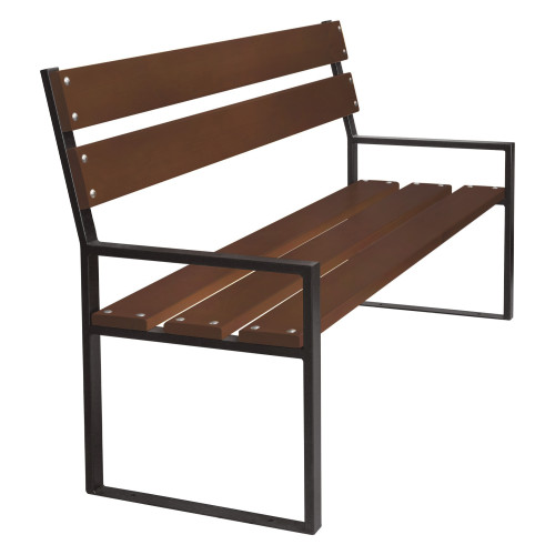 Сиденье и спинка состоят из досок из сосновых материалов. Деревянные элементы покрыты защитным слоем лака, предназначенного для использования на улице. Это защищает от влаги, УФ-лучей и других факторов окружающей среды. Такое покрытие продлевает срок службы скамейки и сохраняет ее первозданный вид. Сочетание металла и сосновых досок придает скамейке элегантный вид. Защитное покрытие защищает древесину от влаги и ультрафиолетовых лучей.