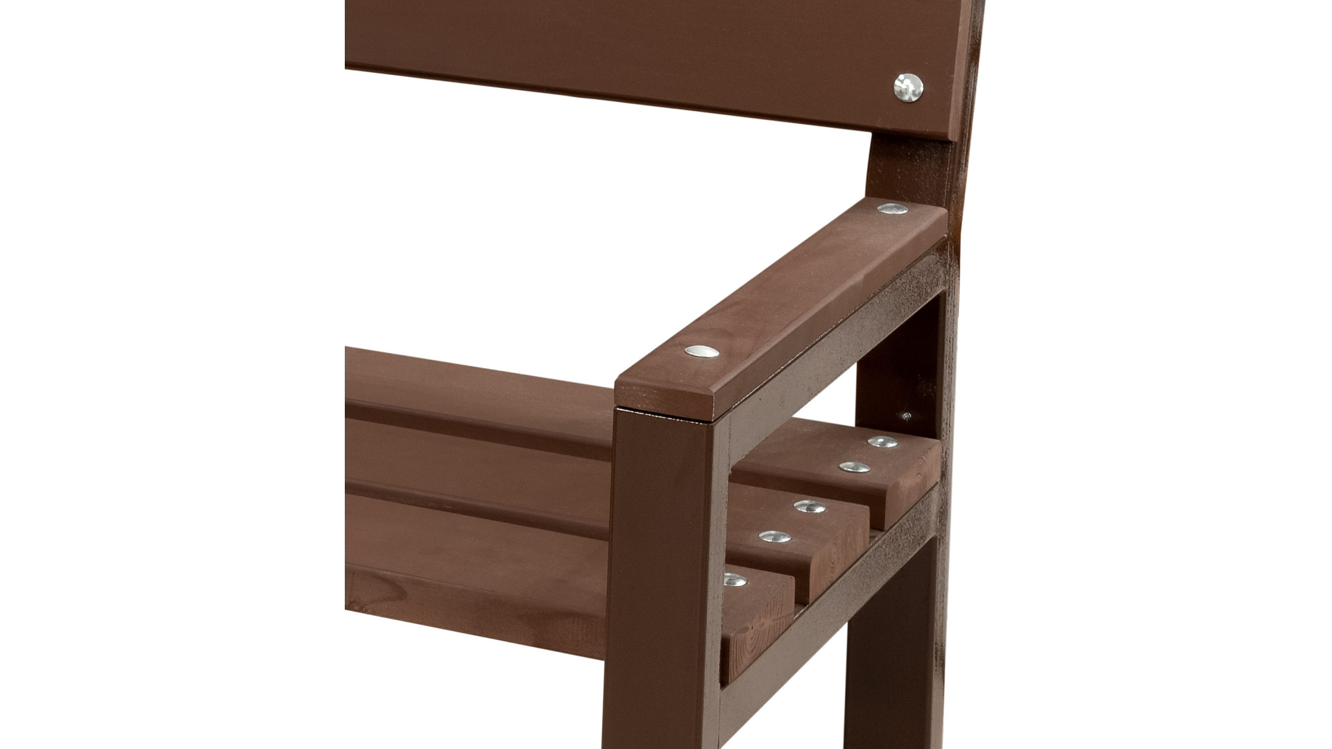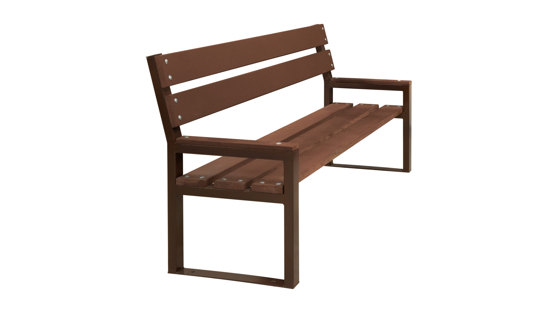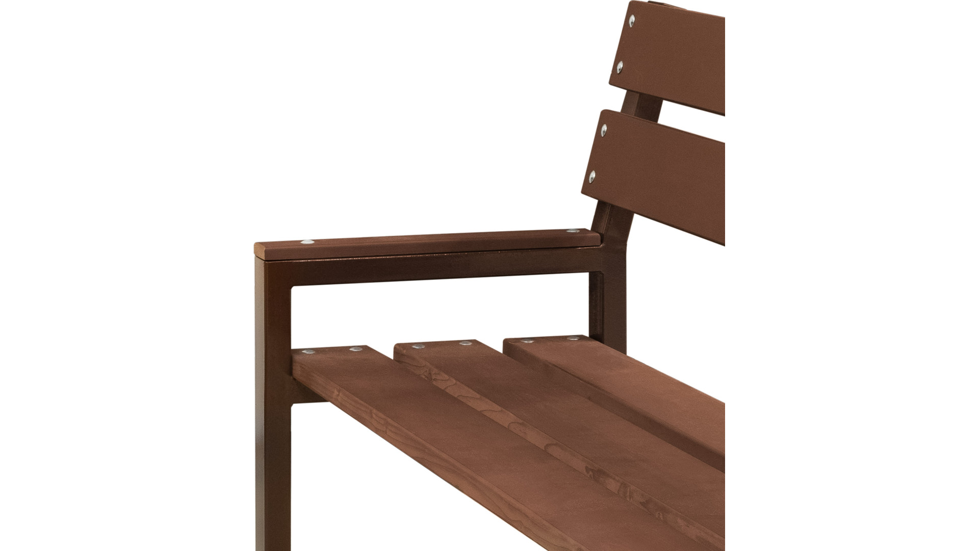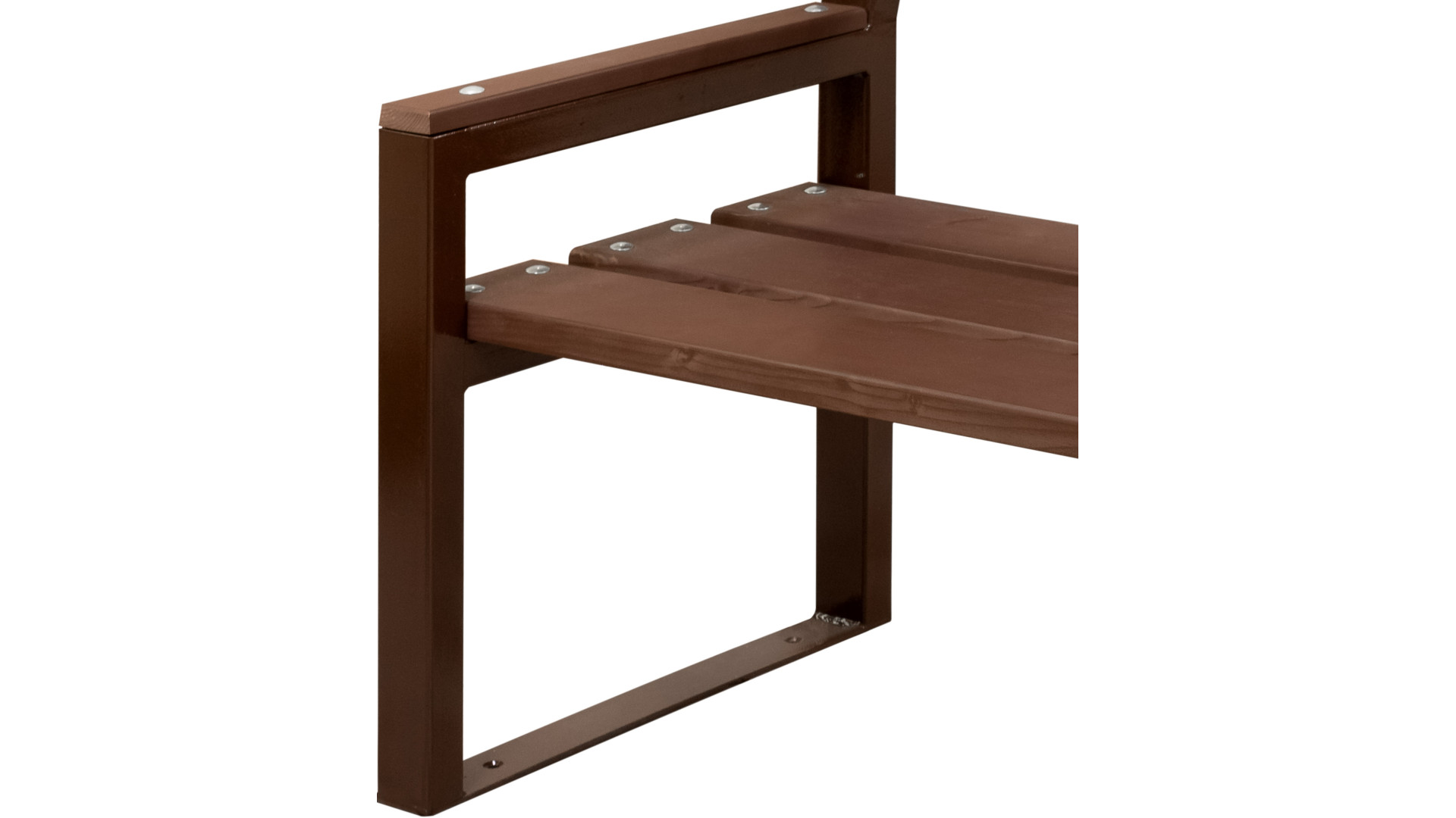 Сборка включает сосновые доски для сиденья и спинки. Деревянные элементы защищены лаковым покрытием, предназначенным для наружного использования. Такой слой защищает поверхности от влаги, ультрафиолетовых лучей и других факторов окружающей среды. Парковая скамейка оснащается подлокотниками. Они обеспечивают повышенный комфорт во время отдыха. Ножки скамейки можно надежно закрепить к земле с помощью анкерных болтов. Это повышает устойчивость и предотвращает акты вандализма.