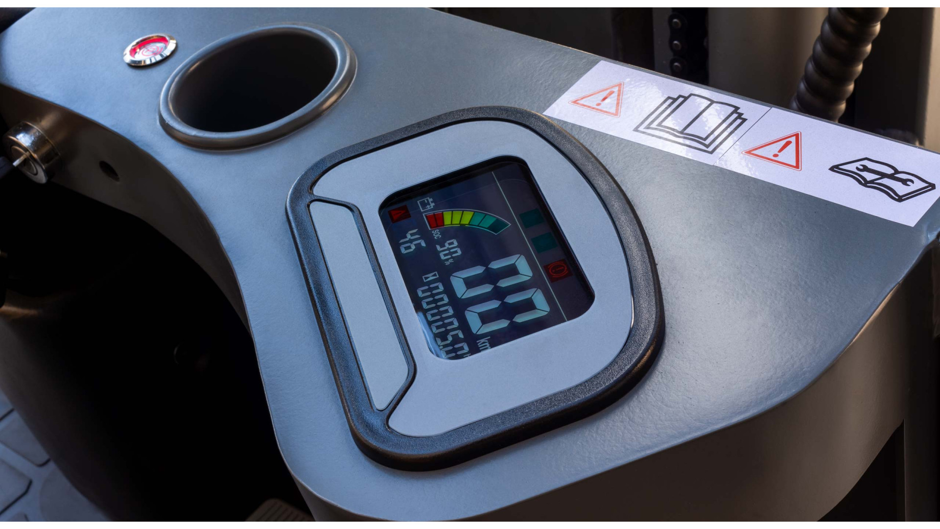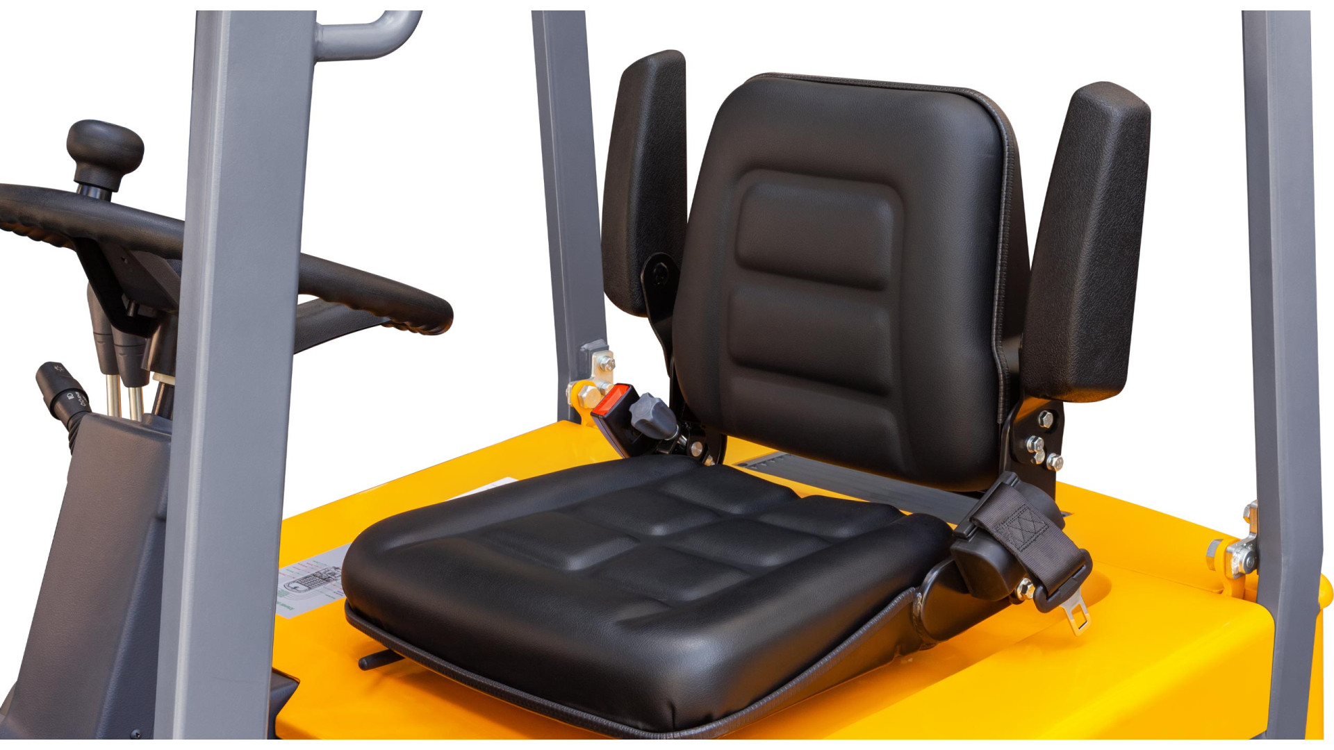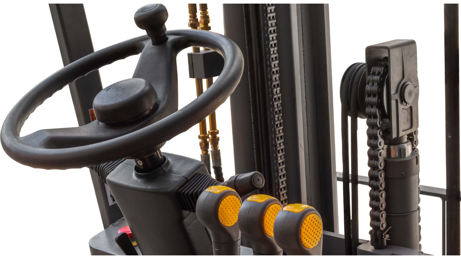 Модель выдерживает грузы массой до 1500 кг с возможностью подъема на высоту до 4,5 м. В комплекте - свинцово-кислотная батарея 24 V емкостью 320 А-ч, зарядное устройство для однофазной сети 220 V, и контроллер Inmotion. Погрузчик оснащен вилами длиной 1070 мм с боковым смещением каретки, что повышает точность при размещении грузов. Вес техники - 2800 кг. Колеса - сплошные, для стабильной эксплуатации на твердых поверхностях.