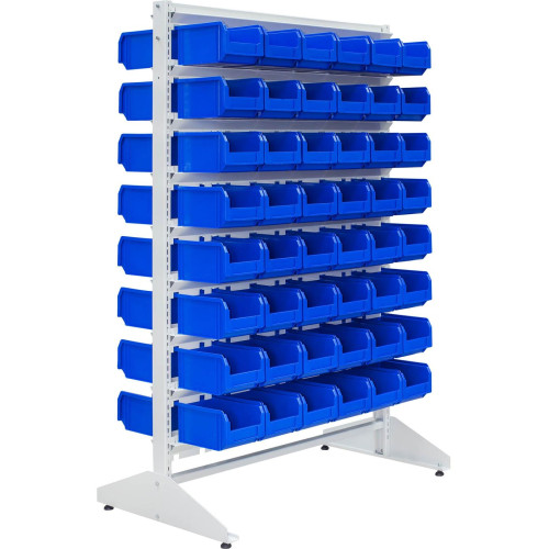 Метизный стеллаж с двусторонним размещением лотков предназначен для упорядоченного хранения креплений, мелких деталей, инструментов и расходных материалов. Его используют на предприятиях, в сервисных мастерских, логистических зонах и на складских участках. Двустороннее размещение пластиковых лотков обеспечивает максимальное использование рабочей площади. Стеллаж устанавливают в центральных зонах помещений или между рабочими постами для доступа с обеих сторон.