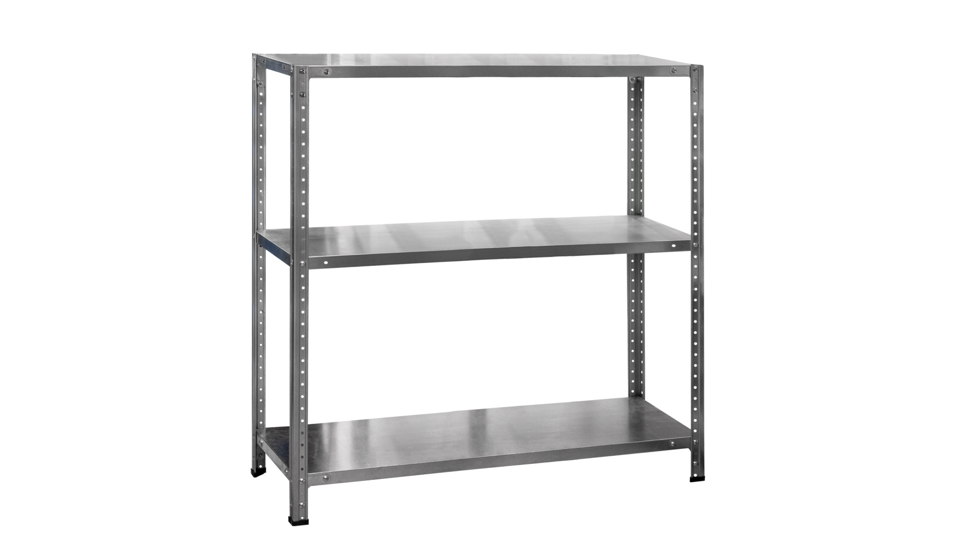 Модель состоит из цельных стоек и стандартных металлических полок. Элементы соединены с помощью винтового крепления, которое формирует устойчивый каркас. Высота конструкций варьируется от 1000 до 3000 мм, ширина - 750, 1000 или 1150 мм, глубина - от 300 до 600 мм. Полка стеллажа выдерживает нагрузку до 120 кг и предназначена для хранения тяжеловесных предметов. Поверхность обрабатывают методом оцинкования, который обеспечивает защиту от коррозии. Количество полок указывается отдельно в таблице модификаций.