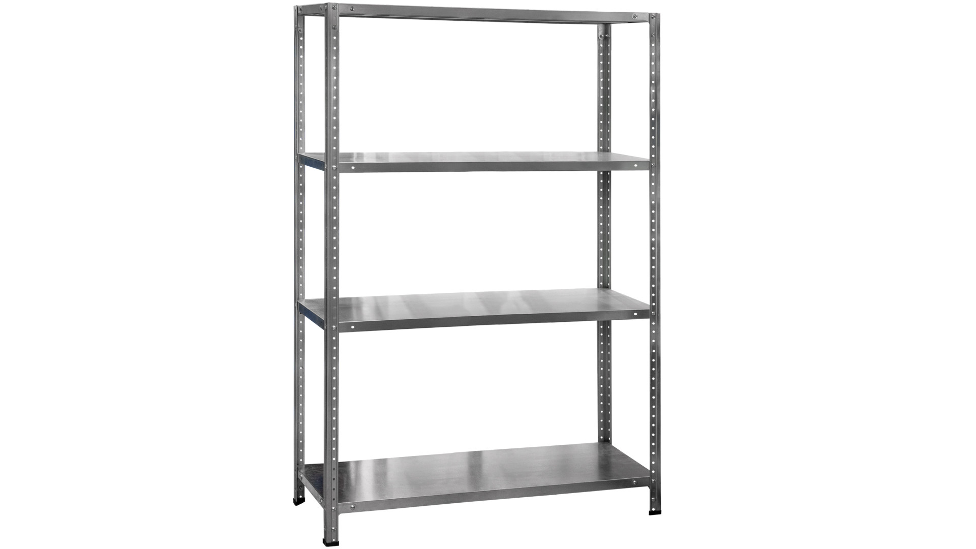 Модель состоит из цельных стоек и стандартных металлических полок. Элементы соединены с помощью винтового крепления, которое формирует устойчивый каркас. Высота конструкций варьируется от 1000 до 3000 мм, ширина - 750, 1000 или 1150 мм, глубина - от 300 до 600 мм. Полка стеллажа выдерживает нагрузку до 120 кг и предназначена для хранения тяжеловесных предметов. Поверхность обрабатывают методом оцинкования, который обеспечивает защиту от коррозии. Количество полок указывается отдельно в таблице модификаций.