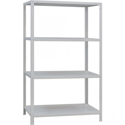 Каркас состоит из стоек цельного типа и стандартных металлических полок. Соединение элементов выполнено винтовым способом. Стеллажи доступны с высотой 2000, 2500 или 3000 мм, шириной 750, 1000 или 1150 мм и глубиной от 300 до 600 мм. Конструкция выдерживает нагрузку до 120 кг, что позволяет размещать грузы средней массы. В процессе производства металл проходит предварительную обработку, после чего наносится порошковая краска. Это покрытие повышает устойчивость к коррозии, царапинам и воздействию влаги. Количество полок указано в таблице технических параметров.