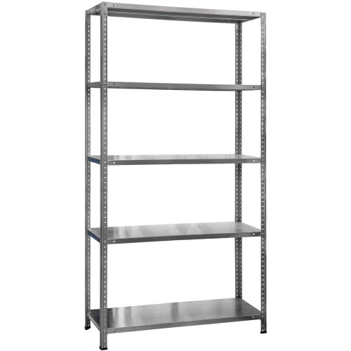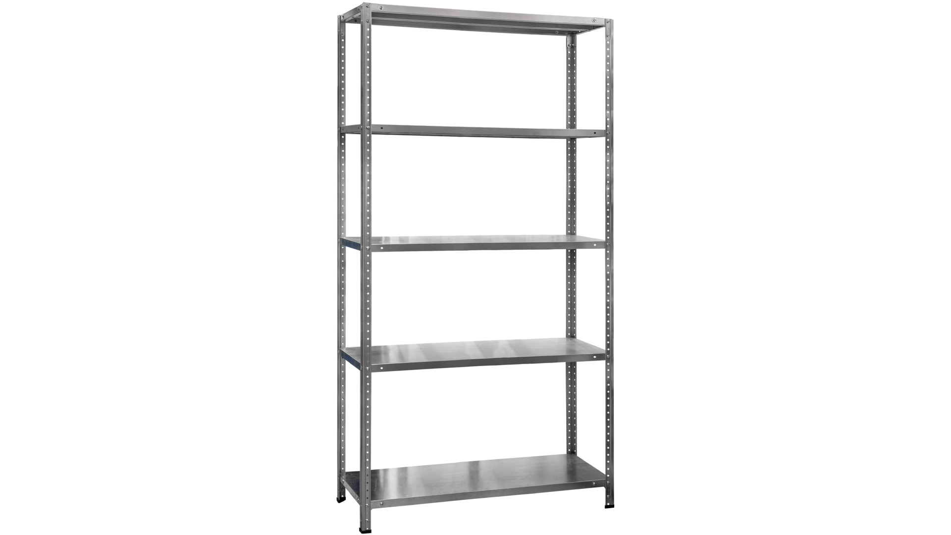Модель состоит из цельных стоек и стандартных металлических полок. Элементы соединены с помощью винтового крепления, которое формирует устойчивый каркас. Высота конструкций варьируется от 1000 до 3000 мм, ширина - 750, 1000 или 1150 мм, глубина - от 300 до 600 мм. Полка стеллажа выдерживает нагрузку до 120 кг и предназначена для хранения тяжеловесных предметов. Поверхность обрабатывают методом оцинкования, который обеспечивает защиту от коррозии. Количество полок указывается отдельно в таблице модификаций.
