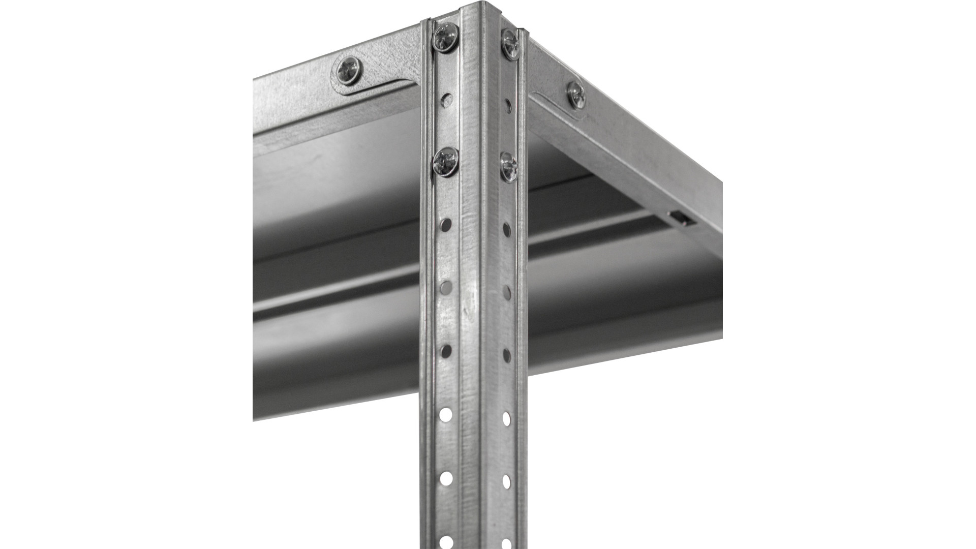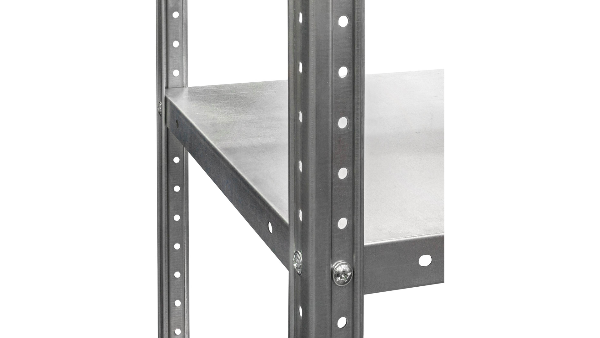 Модель состоит из цельных стоек и стандартных металлических полок. Элементы соединены с помощью винтового крепления, которое формирует устойчивый каркас. Высота конструкций варьируется от 1000 до 3000 мм, ширина - 750, 1000 или 1150 мм, глубина - от 300 до 600 мм. Полка стеллажа выдерживает нагрузку до 120 кг и предназначена для хранения тяжеловесных предметов. Поверхность обрабатывают методом оцинкования, который обеспечивает защиту от коррозии. Количество полок указывается отдельно в таблице модификаций.