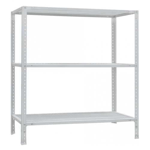Конструкция стеллажа предусматривает цельные стойки, которые обеспечивают жесткость каркаса. Соединение выполнено с помощью винтового крепления, которое позволяет легко монтировать и демонтировать систему. Каждая металлическая полка выдерживает нагрузку до 60 кг при равномерном распределении. Поверхность элементов проходит предварительную обработку, после чего на неё наносится порошковая краска, повышающая защиту от коррозии. Сетчатая форма полок позволяет циркулировать воздуху, предотвращая накопление влаги при хранении инструмента, товара или упаковок.