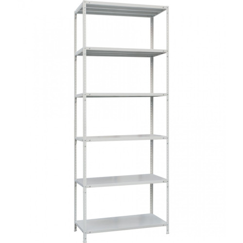 Каркас стеллажа состоит из сплошных стоек и металлических полок. Элементы конструкции соединяются с помощью винтовых соединений. Металл обработан и окрашен порошковой краской, которая повышает устойчивость к влаге и царапинам. Доступны модификации с высотой от 1000 до 3000 мм, шириной 900 или 1150 мм и глубиной 460 или 560 мм. Количество полок составляет от 3 до 7 уровней в зависимости от модели. Полки выдерживает общую нагрузку до 200 кг благодаря ребрам жесткости, которыми они усилены.