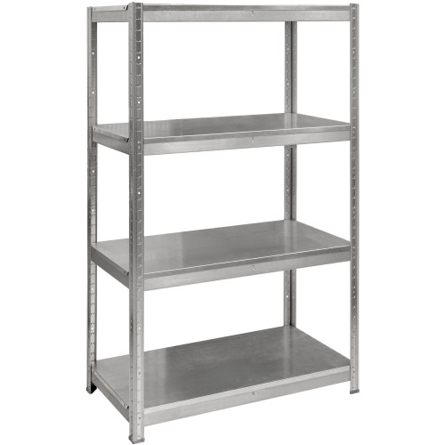 Каркас изготовлен из оцинкованной стали. Крепление полок выполняется с помощью винтового соединения. Стандартная комплектация включает металлические полки, рассчитанные на равномерную нагрузку до 80 кг. Поверхность конструкции покрыта слоем цинка, который обеспечивает антикоррозийную защиту без дополнительной покраски. В каталоге представлены модели с высотой 2280 или 2730.