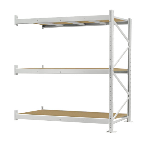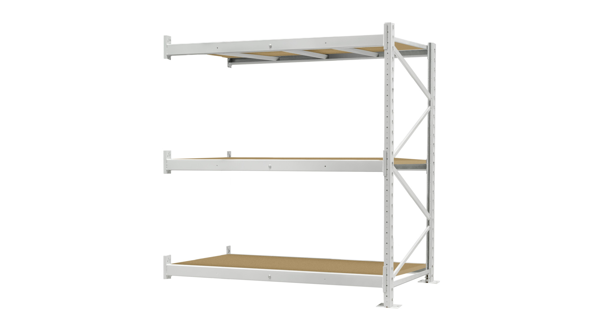 Каркас изготовлен из металла, покрытого порошковой краской, что повышает устойчивость к влаге, коррозии и механическим повреждениям. Полки выполнены из шлифованного ДСП, которое легко очищается и выдерживает ежедневную нагрузку. Они устанавливаются на балки со стяжками, обеспечивающими прочность и стабильность уровней хранения. Приставная секция соединяется с основным стеллажом, образуя единую конструкцию для многоуровневого размещения грузов. Такой тип стеллажей позволяет масштабировать систему хранения без необходимости замены существующих элементов.