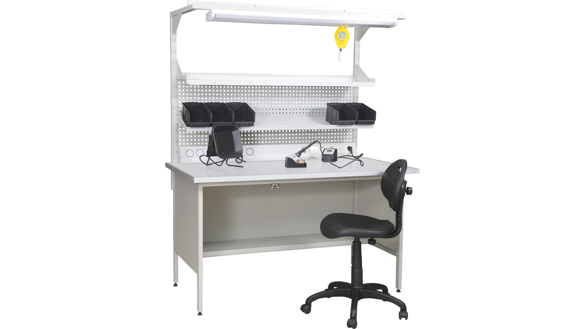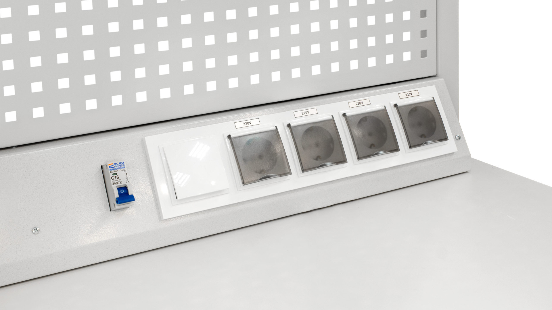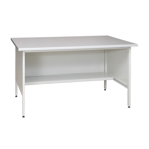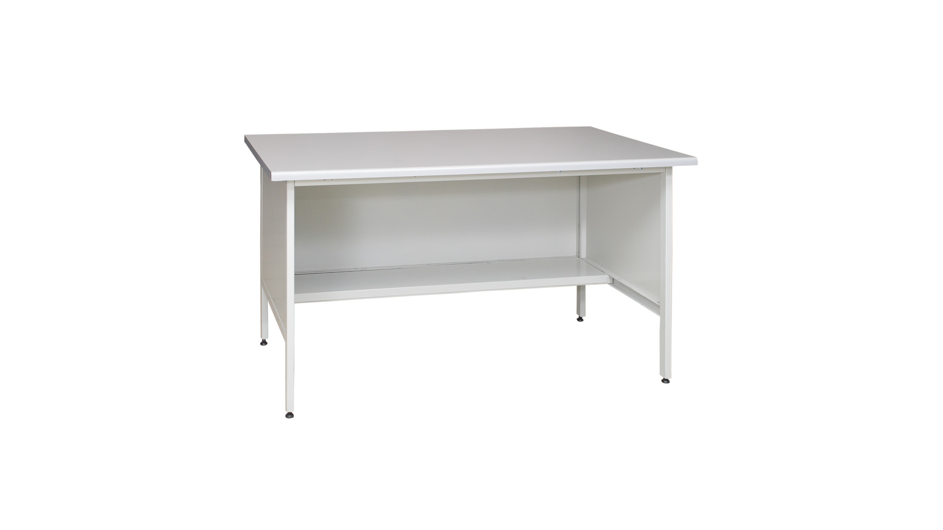 Столешница устойчива к нагрузкам, механическим повреждениям и воздействию влаги, что важно для эксплуатации в производственных и сборочных цехах. Закрытые боковые части конструкции защищают от пыли, брызг и механических повреждений, а нижняя полка под столешницей обеспечивает дополнительное пространство для хранения инструментов или материалов.