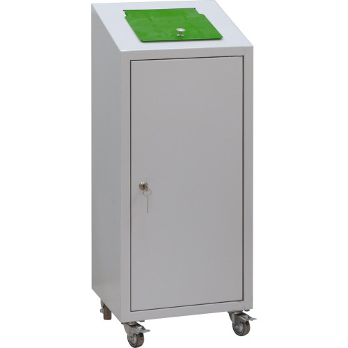 При заполнении контейнера внешняя дверь открывается с помощью ключа, а мусор после открытия внутренней двери извлекается и направляется на дальнейшую переработку. При этом посмотреть наполненность урны можно через окошко, которое есть на внутренней двери. Для удобства использования урна оснащена колесиками, что позволяет без усилий передвигать ее из одного места в другое. Модель имеет эргономичный дизайн и прочный металлический корпус.