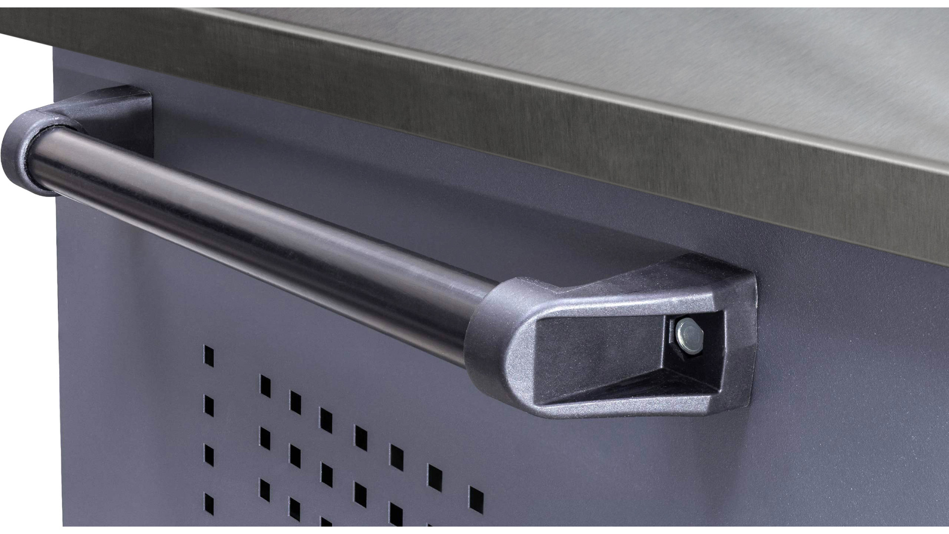 Металлический каркас обеспечивает стабильность и выдерживает интенсивные нагрузки. Порошковое покрытие создает дополнительный барьер от воздействия внешних факторов. В зависимости от специфики работ можно выбрать один из вариантов столешниц:
