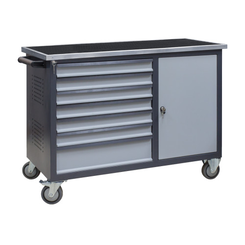 Верстак серии ВМ - это мобильный рабочий стол, который используется в мастерских, производственных помещениях и ремонтных цехах. Каркас изготовлен из стали, которая проходит предварительную обработку методом фосфатирования, что повышает сцепление краски с поверхностью, и покрывается порошковой краской для защиты от коррозии и механических повреждений. Конструкция оснащена колесами с фиксаторами и ручкой, что позволяет удобно перемещать верстак в пределах рабочей зоны и надежно фиксировать его во время работы. Это решение подходит для предприятий, которые нуждаются в гибком рабочем месте.
