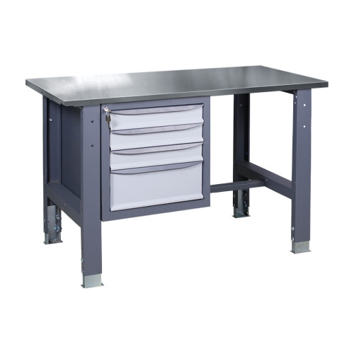 Каркас изготовлен из стали, которая проходит предварительную обработку для защиты от износа. Покрытие порошковой краской обеспечивает дополнительную устойчивость к воздействию агрессивных сред. Для выполнения различных видов работ можно выбрать один из типов столешниц: