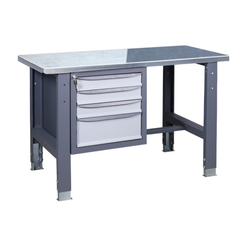 Каркас изготовлен из стали, которая проходит предварительную обработку для защиты от износа. Покрытие порошковой краской обеспечивает дополнительную устойчивость к воздействию агрессивных сред. Для выполнения различных видов работ можно выбрать один из типов столешниц: