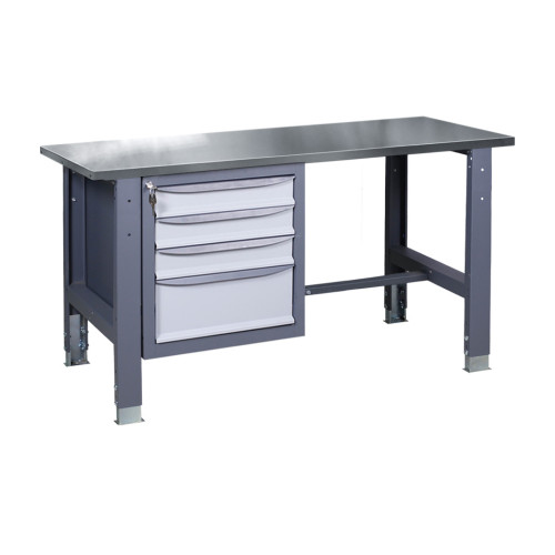 Каркас изготовлен из стали, которая проходит предварительную обработку для защиты от износа. Покрытие порошковой краской обеспечивает дополнительную устойчивость к воздействию агрессивных сред. Для выполнения различных видов работ можно выбрать один из типов столешниц: